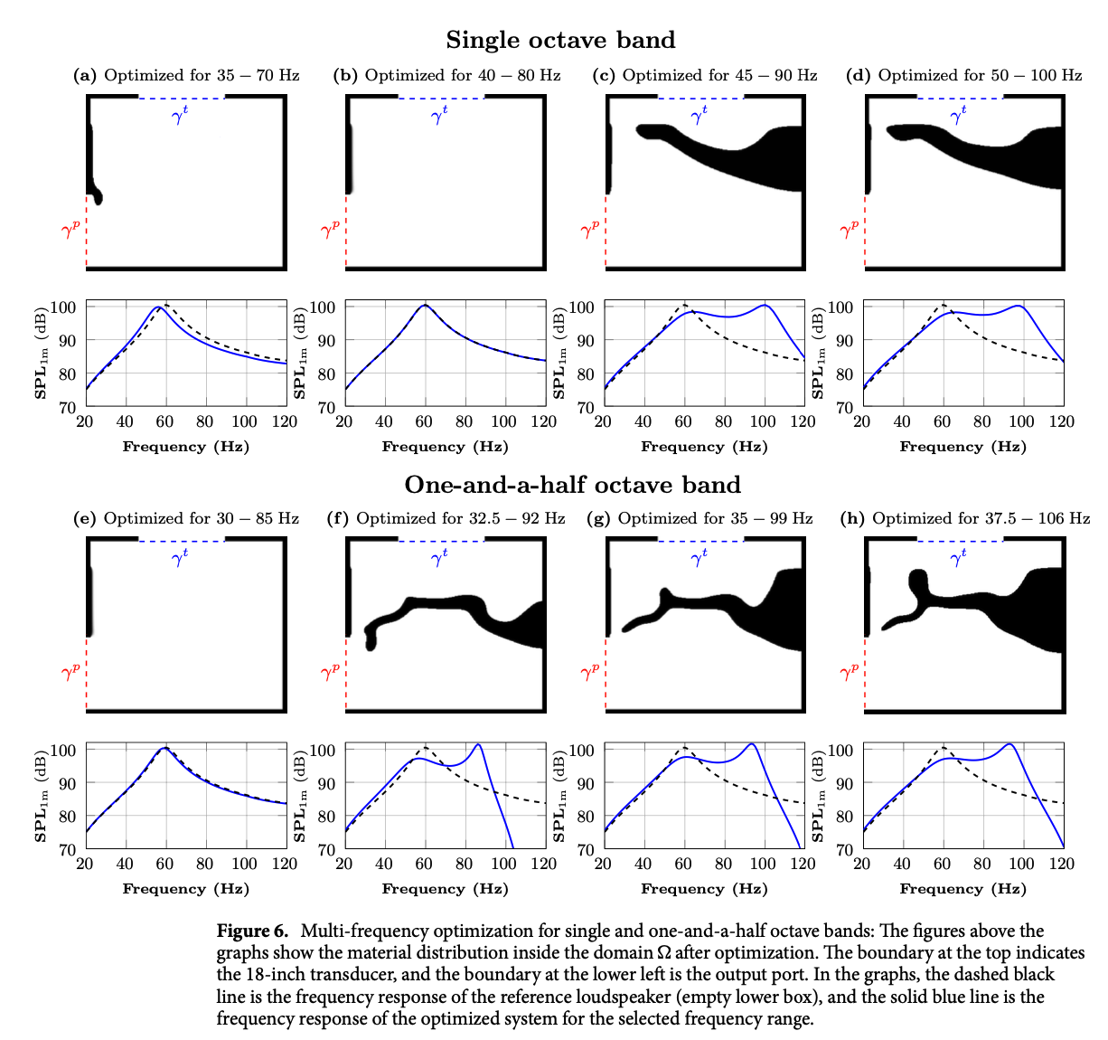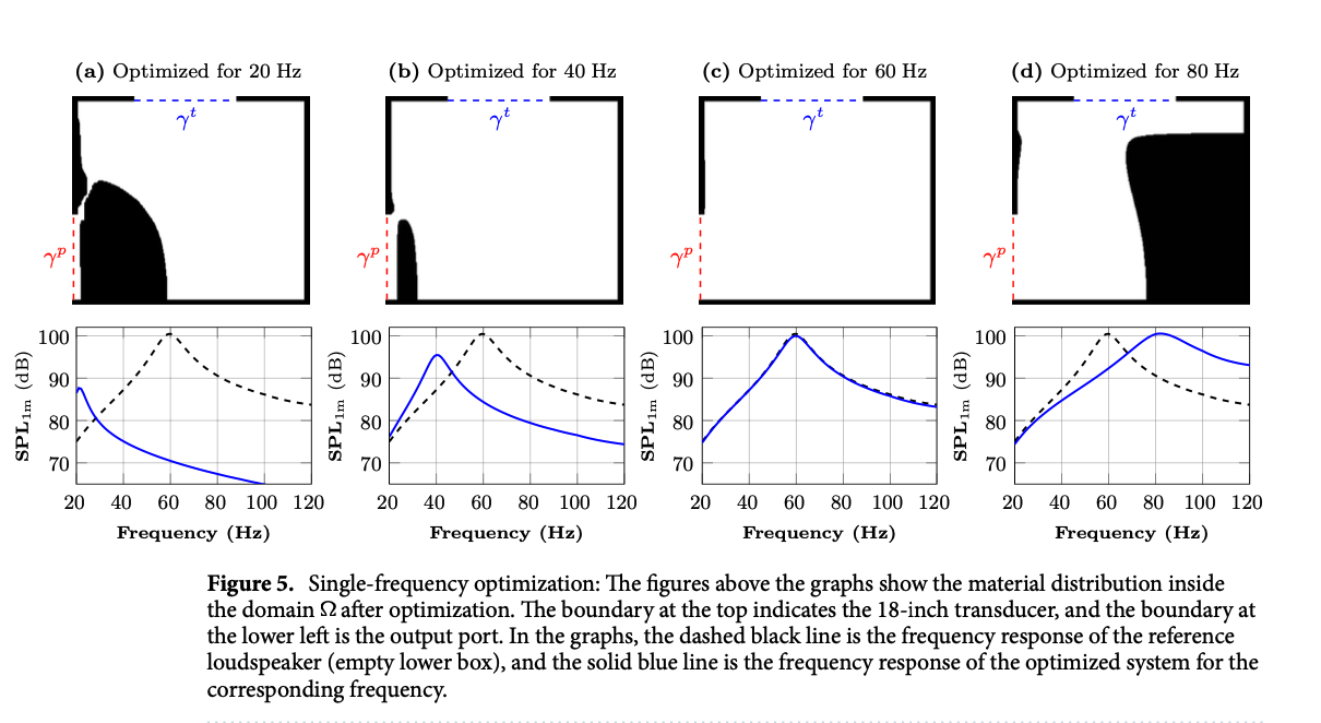 is used topology optimization to remove air material from the inner region of the loudspeaker, which creates voids, using the edges of the enclosure as a void