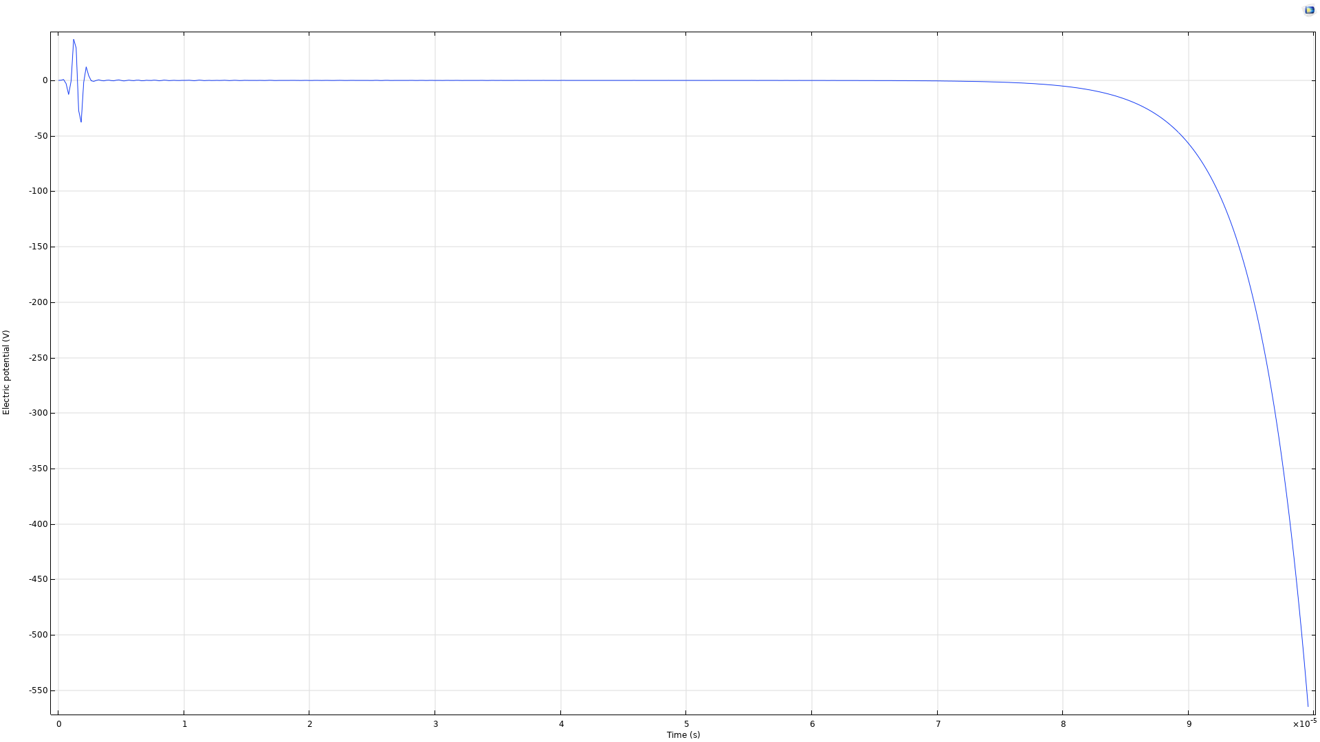 I assigned an edge as Electric Potential boundary condition and to create a pulse I inserted an Analytic function as voltage input, just like the tutorial. The simulation starts fine, but after a while, the electric potential in the piezoelectric domain grows and I can't figure it out why. I attached a plot of the average electric potential on the edge, in this image is visible the input pulse and how exponentially the voltage grows after some point.
