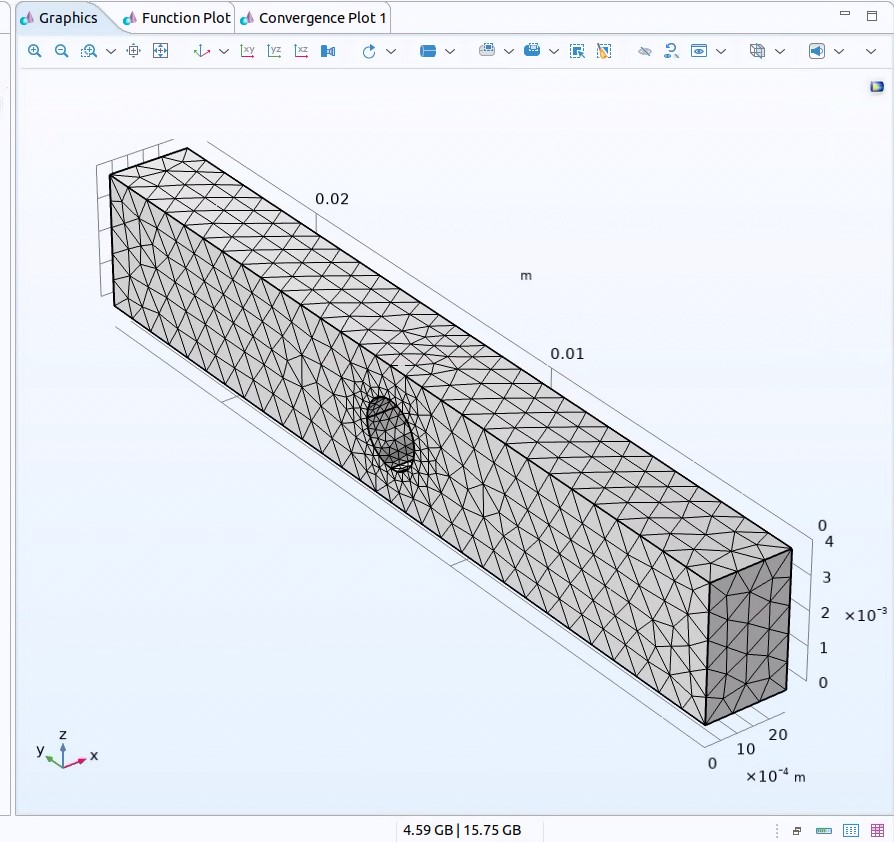 I have a plate geometry with a hole at the centre. I would like to mesh it with 3d hexahedral mesh. I am facing convergence issue while running it using the physics generated or user generated tetrahedral or hex mesh. A warning message saying "Inverted element " shows up. The simulation then terminates abruptly because of a convergence issue : "comsol Time adaptation interrupted. Failed to find consistent initial values. Last time step is not converged.". I have also tried 'adaptive mesh" but that didn't help either.