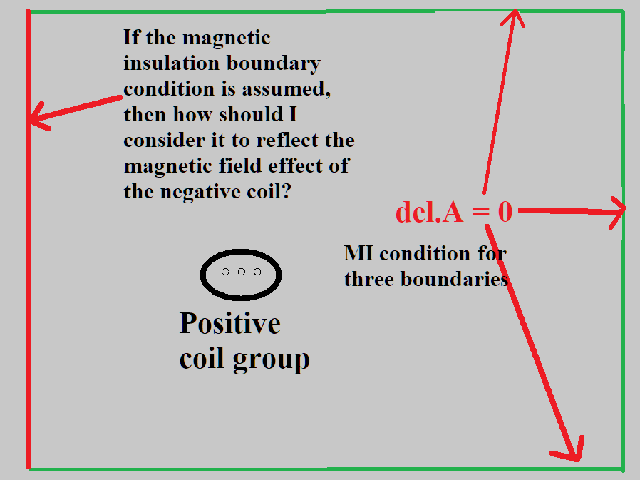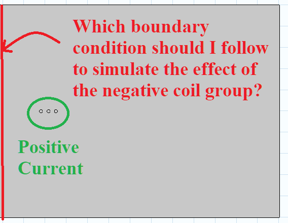 1. I am already using magnetic insulation boundary condition with (del.A = 0) in three sides Now, how to incorporate the fourth side (See the figure attached), to consider the magnetic field of negative coil group in the simulation.