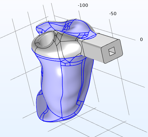 The geometry is generated from a 3D scan of the hand; therefore, most of the dimensions are non-parametric and the shape is highly organic. A portion of the device is in direct contact with the hand and its external shape must be preserved for ergonomic reasons.
