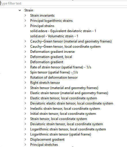 I am simulating a model to see the interaction of electric field of a tip (like AFM tips) on a electrostriction substrate surface. In the model, I am trying to insert a defect in the material. I need a plot of the strain or compression the surface suffers when the tip is polarized, which characterizes a electrostriction effect. But in the plot I could not find a way to plot the strain in 2D, just the stress. How can I plot the plot equivalent a compression effect in th results?