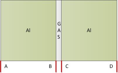 I draw two blocks with a 2µm gap between them,and the material of the two blocks are set to aluminum,and the gap is filled with gas. then the boundary conditions of "Ground" and "Terminal" should be the surfaces of blocks away from gas(surface A and D in schematic diagram) or the surfaces of blocks overlap with gas(surface B and C in schematic diagram)? I got two different results in the conditions above mentioned,and why? the two blocks are metal and should be a equipotential body in the real world and why i got a different result in the comsol?