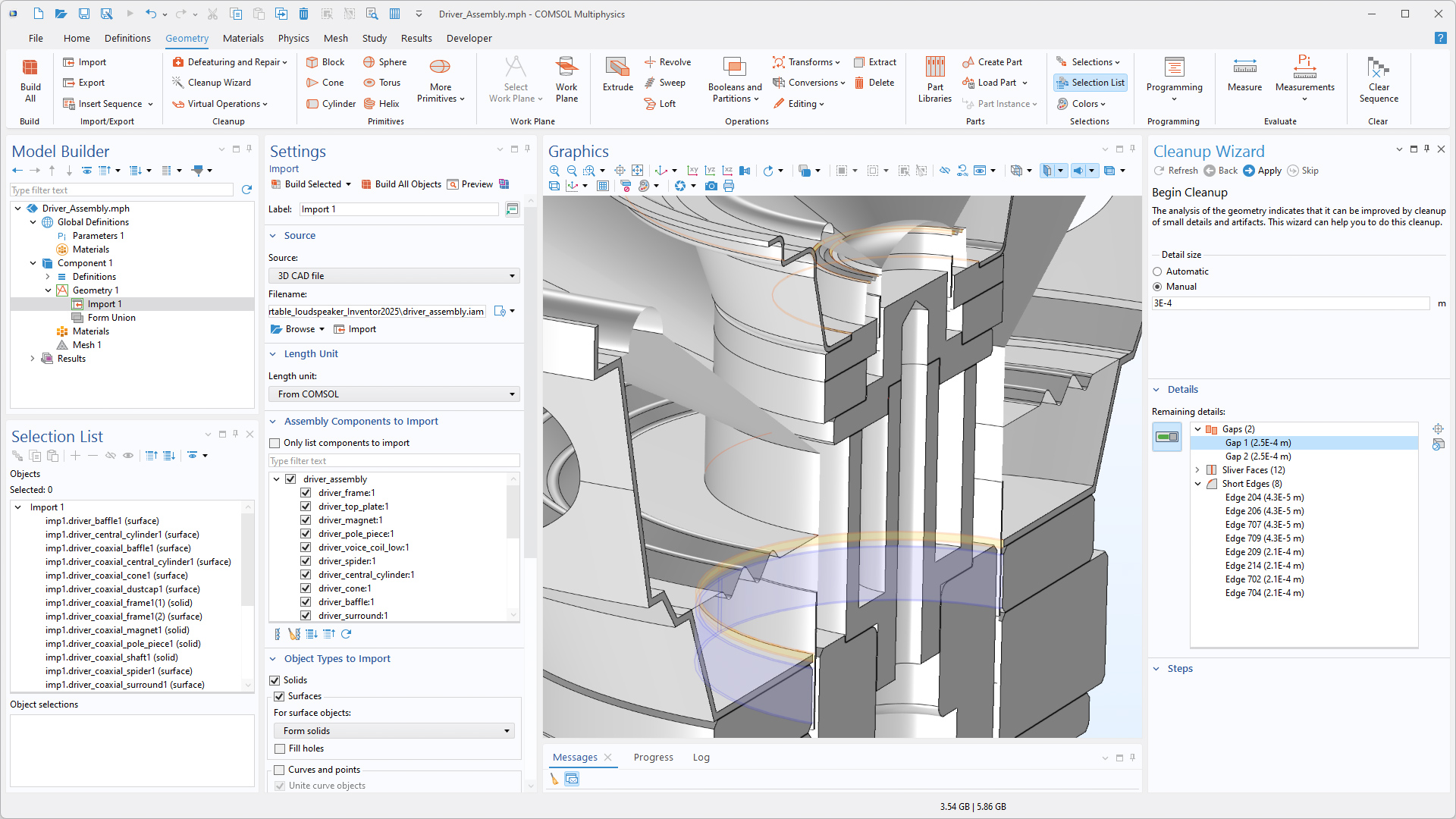 Il est désormais plus facile de sélectionner des composants spécifiques à importer à partir d'un assemblage CAO grâce à la nouvelle fonctionnalité d'aperçu 3D dans la fenêtre Graphiques. Cette fonctionnalité d'aperçu est disponible lors de l'import d'assemblages CAO enregistrés dans les formats de fichier des logiciels Inventor®, NX™, PTC Creo Parametric™, PTC Pro/ENGINEER® et SOLIDWORKS®.