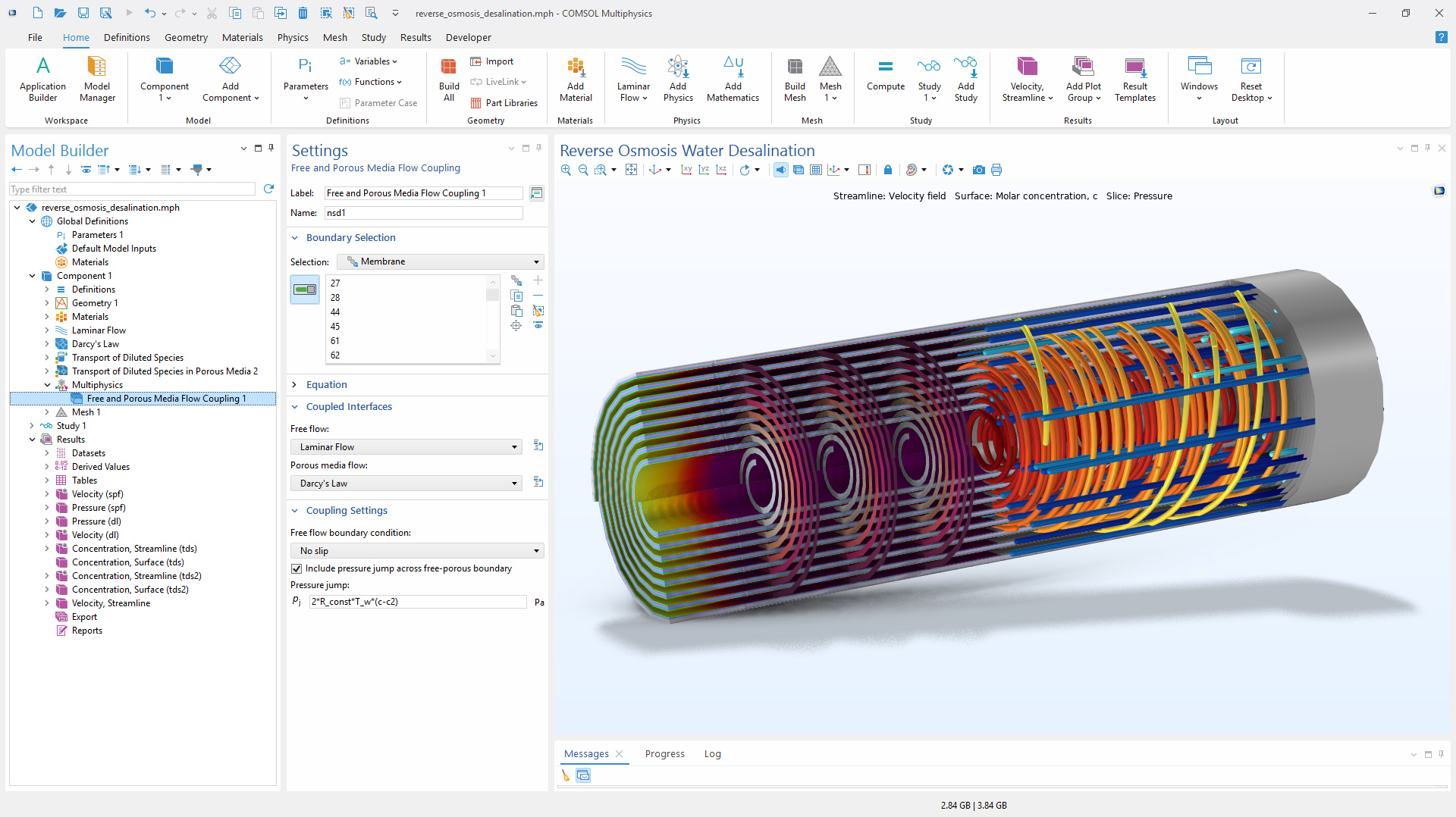 Le Couplage de l'écoulement en milieux libre et poreux comporte une nouvelle option pour inclure un saut de pression à travers la frontière libre-poreux. Cela permet de modéliser, par exemple, la pression osmotique au niveau d'une membrane semi-perméable, soutenue par un matériau intercalaire poreux, ou un saut de pression dû à la pression capillaire dans le cas d'un écoulement multiphasique.