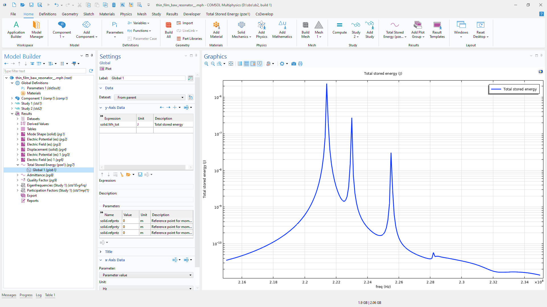 Wh_tot , est créé lors de la résolution avec une étude en Domaine fréquentiel. Le graphique par défaut nécessite soit le couplage Piézoélectricité, soit le couplage Electromécanique.