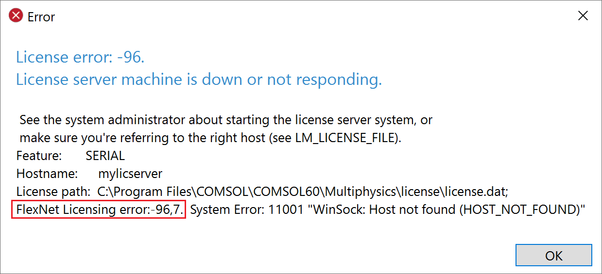 Any of the following errors can appear for example if the COMSOL application has problems communicating with the license manager: